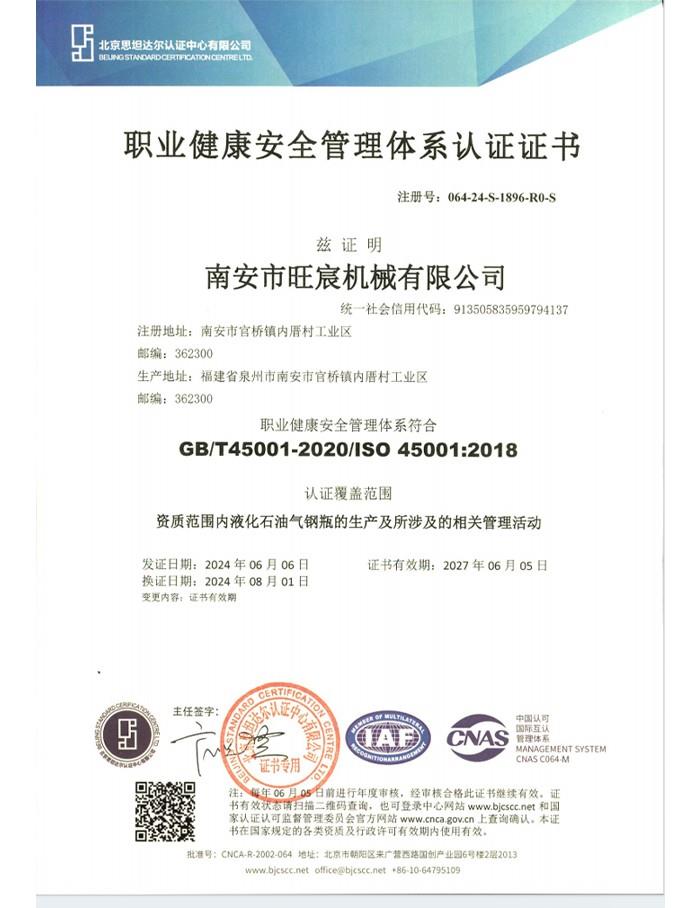 職業健康安全管理體系認證證書